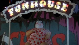 Released in 1981, the plot of The Funhouse is simple: four teenagers (two couples) spend the night in a funhouse, where they accidentally witness the son of the funhouse’s barker kill a woman. The owner and son discover the teens, realize they are witnesses to the murder, and set off to kill them, one by one.