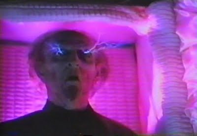 Raymar busts out of his tomb. Strange, silly-looking electrical charges emit from his eyes.