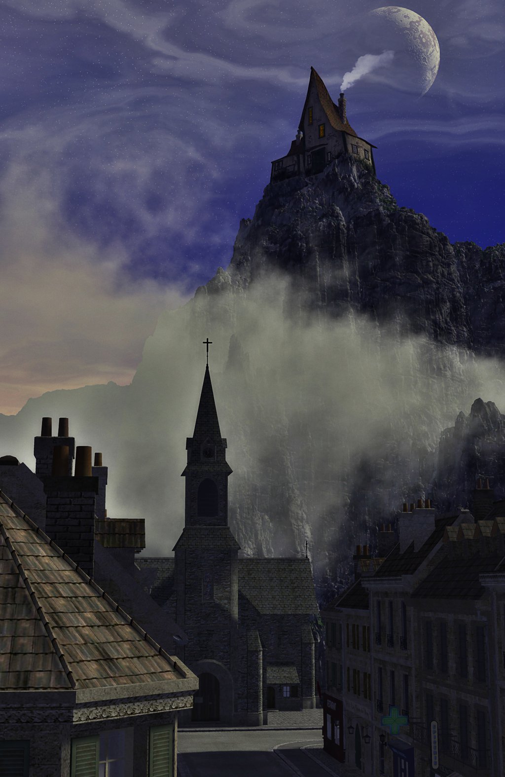 So once again, Lovecraft’s entities march to the beat or their own cadaverous drum. Ah but wait! There is something else that sets these two stories apart. Not only are the houses inhabited with beings of myth and the occult, but they also possess portals to alternate dimensions. “The Strange High House in the Mist” rests on top of a mountaintop where the front wall “stood flush with the cliff’s edge, so that the single narrow door was not to be reached save from the empty aether.” Nevertheless, “beings” do come-a- knocking; beings that materialize right out of the misty air of the sky, beings that invite a mundane man along on their heavenly parade. Within the bizarre architectural angles of The Witch House lurks an unearthly geometry that gives way to “spiral black vortices” that lead to the demon “Azathoth, which rules all time and space from a black throne at the centre of Chaos”