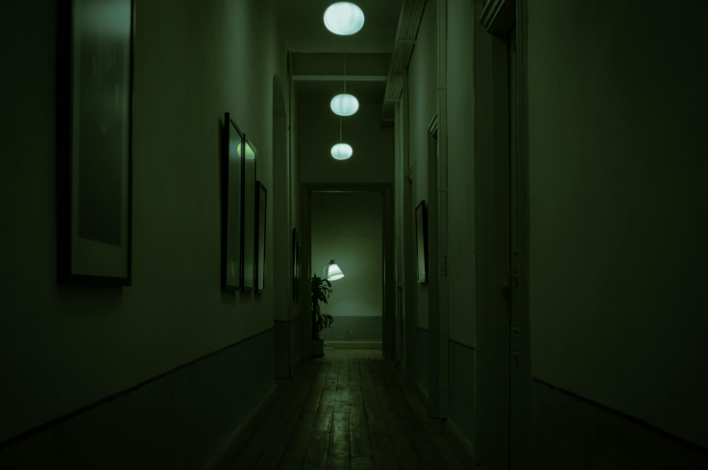 Characters in haunted houses often find themselves wandering through long, dark corridors. These halls can be mazelike, leading to several rooms or even other corridors. Traversing the halls of a haunted house equates to plot itself. Hall wanderers carry the plot on their shoulders as they are forced to make choices. Do I enter the room on the left or the right? Do I continue along and pass into another corridor? It’s the rising action of the story. Readers/viewers know that a plot-turning situation is behind one of those closed doors or connecting corridors .